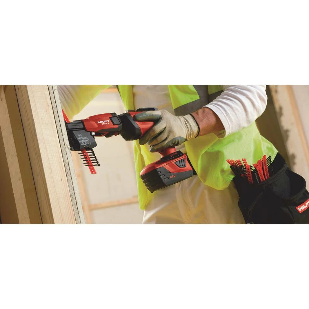 From installing drywall to exterior sheathing, the Hilti SD-M 1 Collated Drywall Screws are designed to dramatically improve speed by eliminating the need for single screws. Whether you are new to the industry or a seasoned veteran, the convenient storing and rapid strip loading of the Hilti system enables all installers to work more quickly and more comfortably. Not needing to load single screws allows users to wear gloves while still maintaining high levels of productivity.