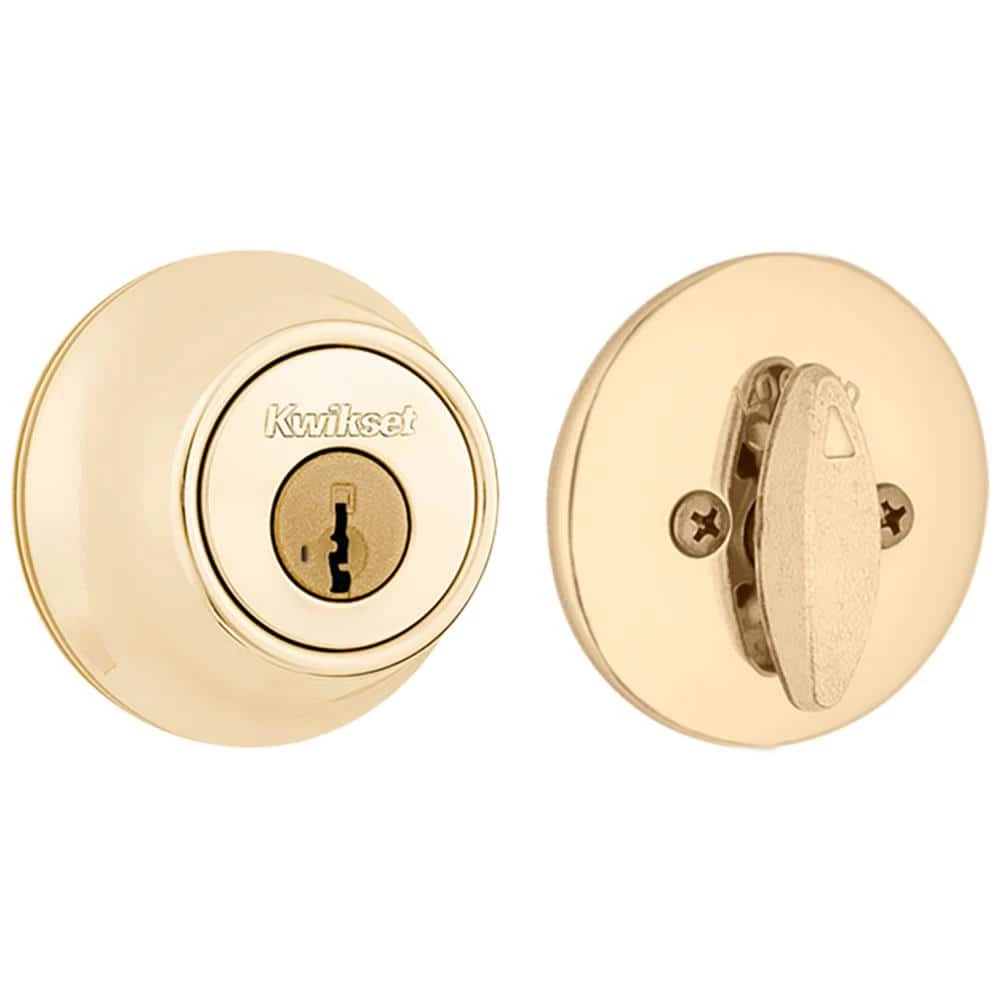 As the industry leader, Kwikset has provided trusted security for over 70-years and has become synonymous with security, peace of mind, style and innovation. The largest-selling deadbolt in America, the 600 series provides tough, effective protection at an affordable price. This single cylinder deadbolt is operated by a key on the outside or a thumb turn on the inside. The Polished Brass finish adds to the traditional look and feel of the product and makes a classic statement.
