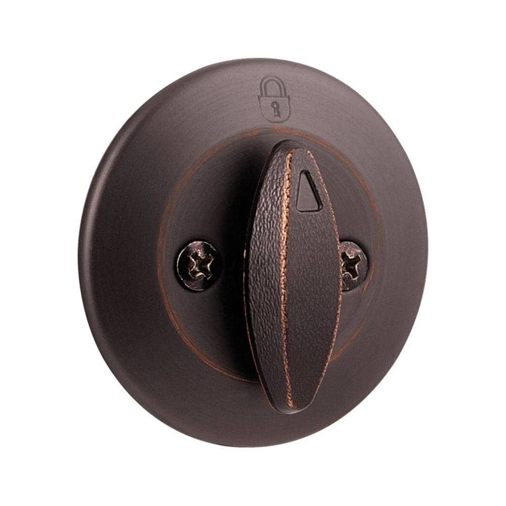 As the industry leader, Kwikset has provided trusted security for over 60-years and has become synonymous with security, peace of mind, style and innovation. The largest-selling deadbolt in America, the 600 series provides tough, effective protection at an affordable price. The Venetian Bronze finish is hand-rubbed to reveal unique bronze highlights and provides a rich and warm complement to the product’s style. This single cylinder deadbolt can be locked or unlocked by a key on the outside or the turn button on the inside.