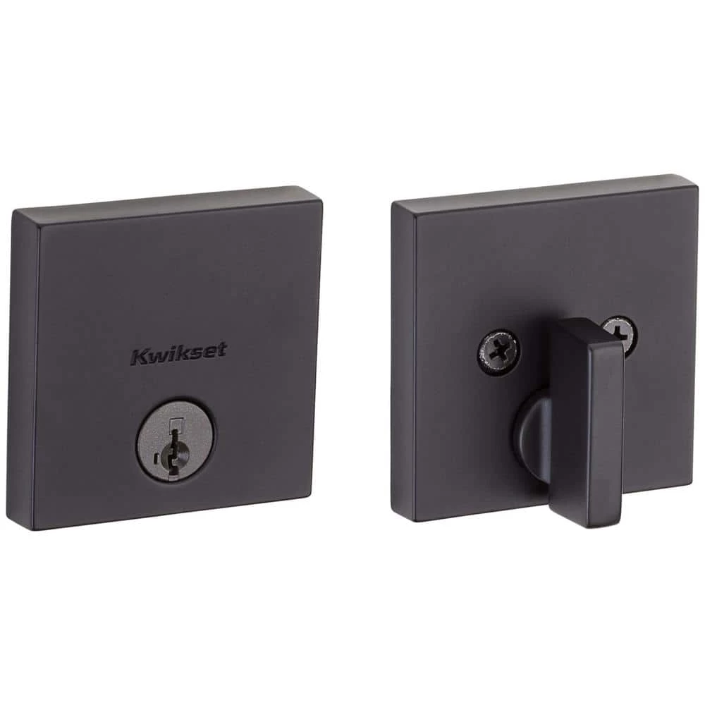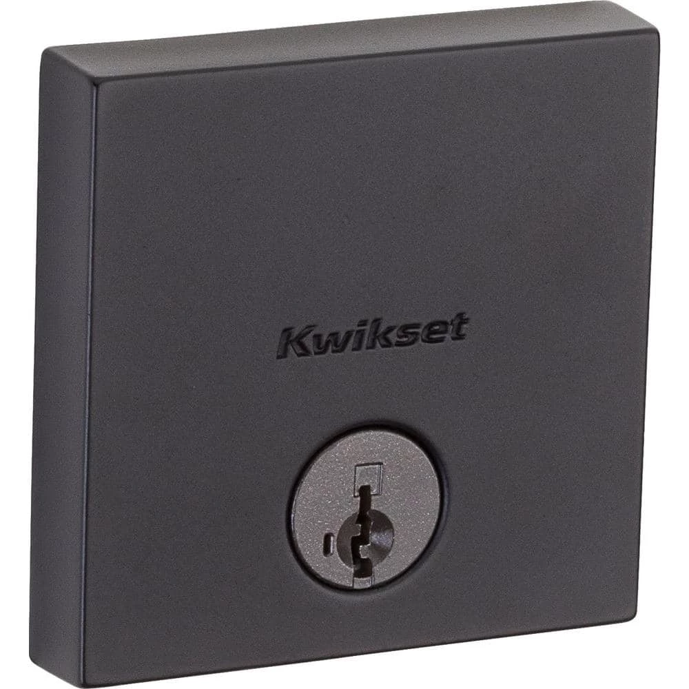 Step up to designer styles and superior security with Kwikset Signature Series products. This single cylinder deadbolt is operated by a key on the outside or a thumb turn on the inside. The rich tones of Matte Black add the finishing touch to this product. The Matte Black finish provides a rich and warm complement to the products style.