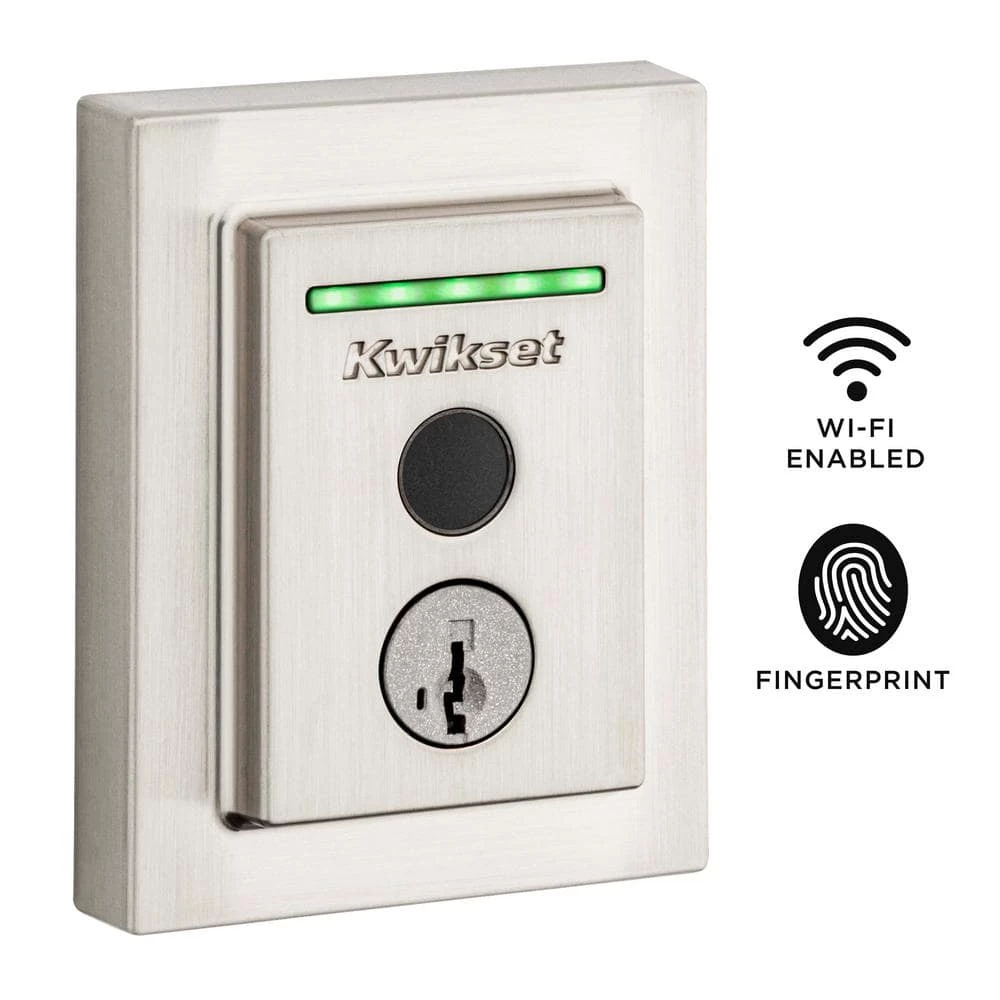 The Halo Touch fingerprint smart lock allows you to simply use your unique fingerprint to lock and unlock your door. Halo Touch has WiFi built-in that connects directly to your home WiFi network and smartphone for a secure smart home that does not require a third party smart home hub, panel or subscription. With up to 100 fingerprints (50 users), you can give access to your family and friends with their unique fingerprint and manage access through the Kwikset app. You can also lock and check the status of Halo using voice commands with Amazon Alexa and Google Assistant. This single cylinder deadbolt can be locked or unlocked by using the keypad or key from the outside as well as the turn button from the inside. The crisp, clean appearance of the Satin Nickel finish adds to the overall look of the product and brings a modern feel.