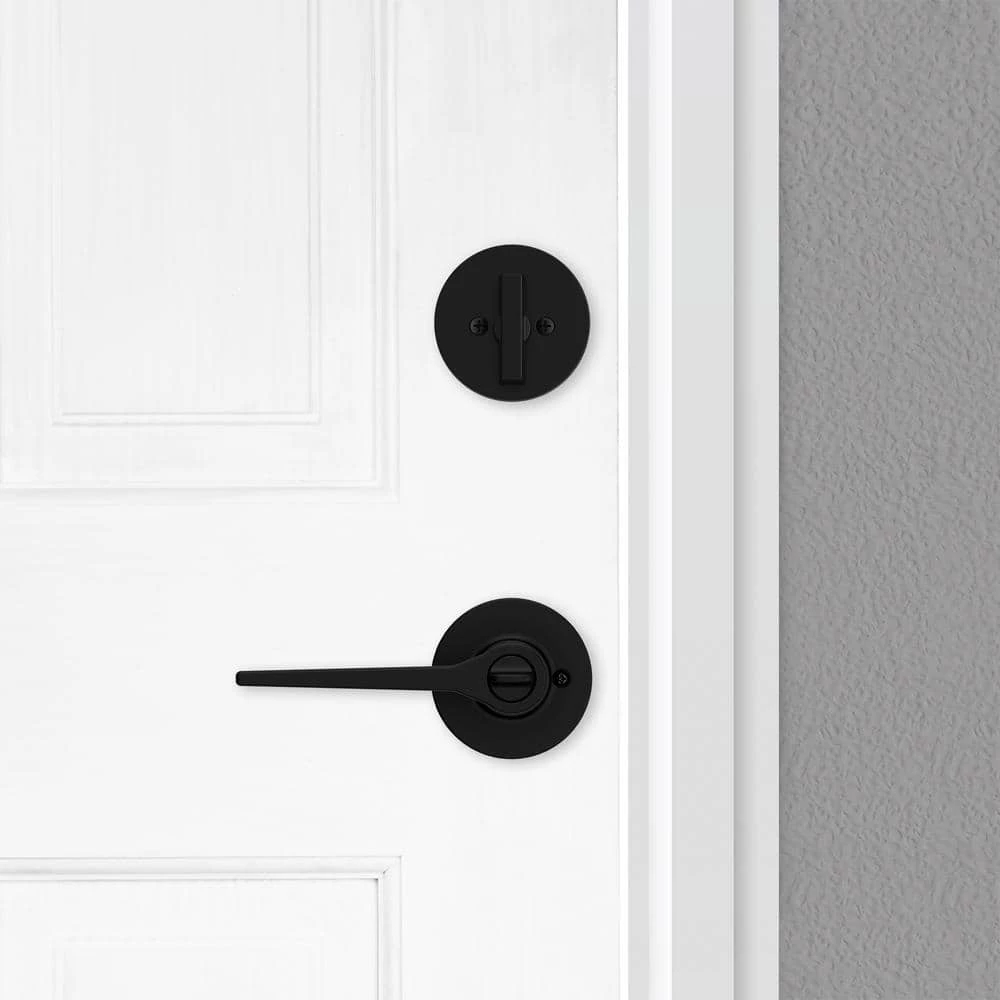 - Deadbolt latch has 2 interchangeable faceplates – round corner and square corner