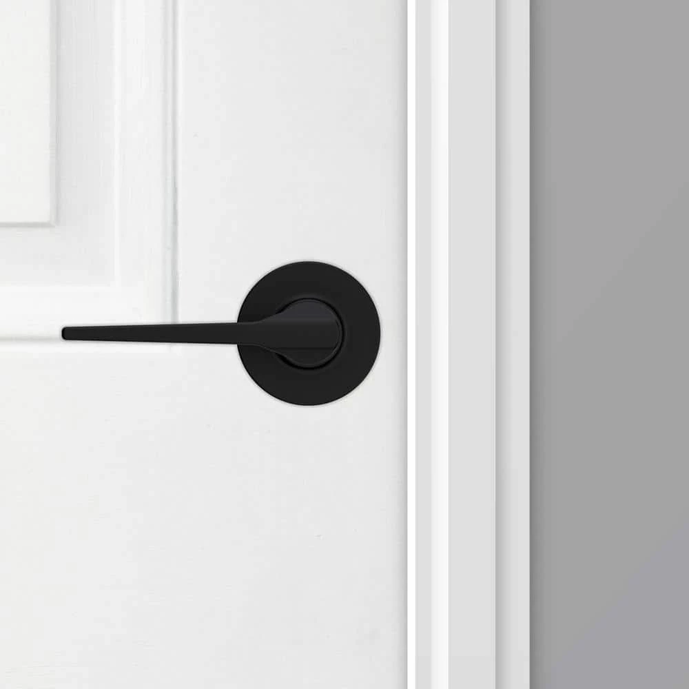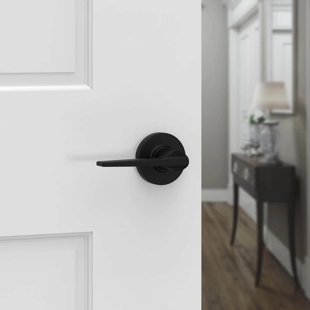 As the industry leader, Kwikset has provided trusted security for over 70-years and has become synonymous with security, peace of mind, style and innovation. The Hollis Lever combines the strength and durability of a Kwikset product in stylish and contemporary design. The contours of the lever makes it feel comfortable without sacrificing features. Available with SmartKey Security and Microban on select finishes. It comes in either a round or a square rose, providing alluring aesthetics. This passage knob/lever is best used on interior hall and closet applications where no locking is required, so the knob/lever is always free to turn. The knob/lever is reversible and mounts on both left and right handed doors. The rich tones of Matte Black add the finishing touch to this product. The Matte Black finish provides a rich and warm complement to the product’s style.