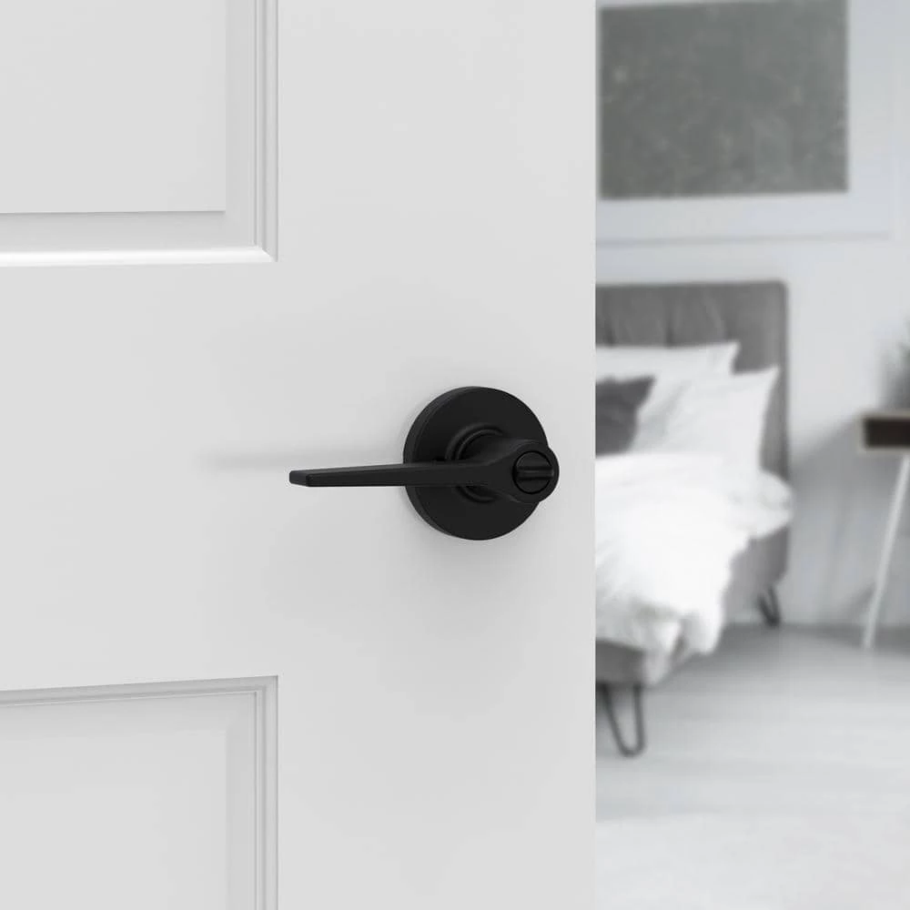 As the industry leader, Kwikset has provided trusted security for over 70-years and has become synonymous with security, peace of mind, style and innovation. The Hollis Lever combines the strength and durability of a Kwikset product in stylish and contemporary design. The contours of the lever makes it feel comfortable without sacrificing features. Available with Smartkey Security and Microban on select finishes. It comes in either a round or a square rose, providing alluring aesthetics. This privacy knob/lever is best used in interior bedroom and bathroom applications where privacy is required. Both knobs/levers are operated by the thumb turn on the inside. The outside knob/lever is unlocked by an emergency key. The rich tones of Matte Black add the finishing touch to this product. The Matte Black finish provides a rich and warm complement to the product’s style.