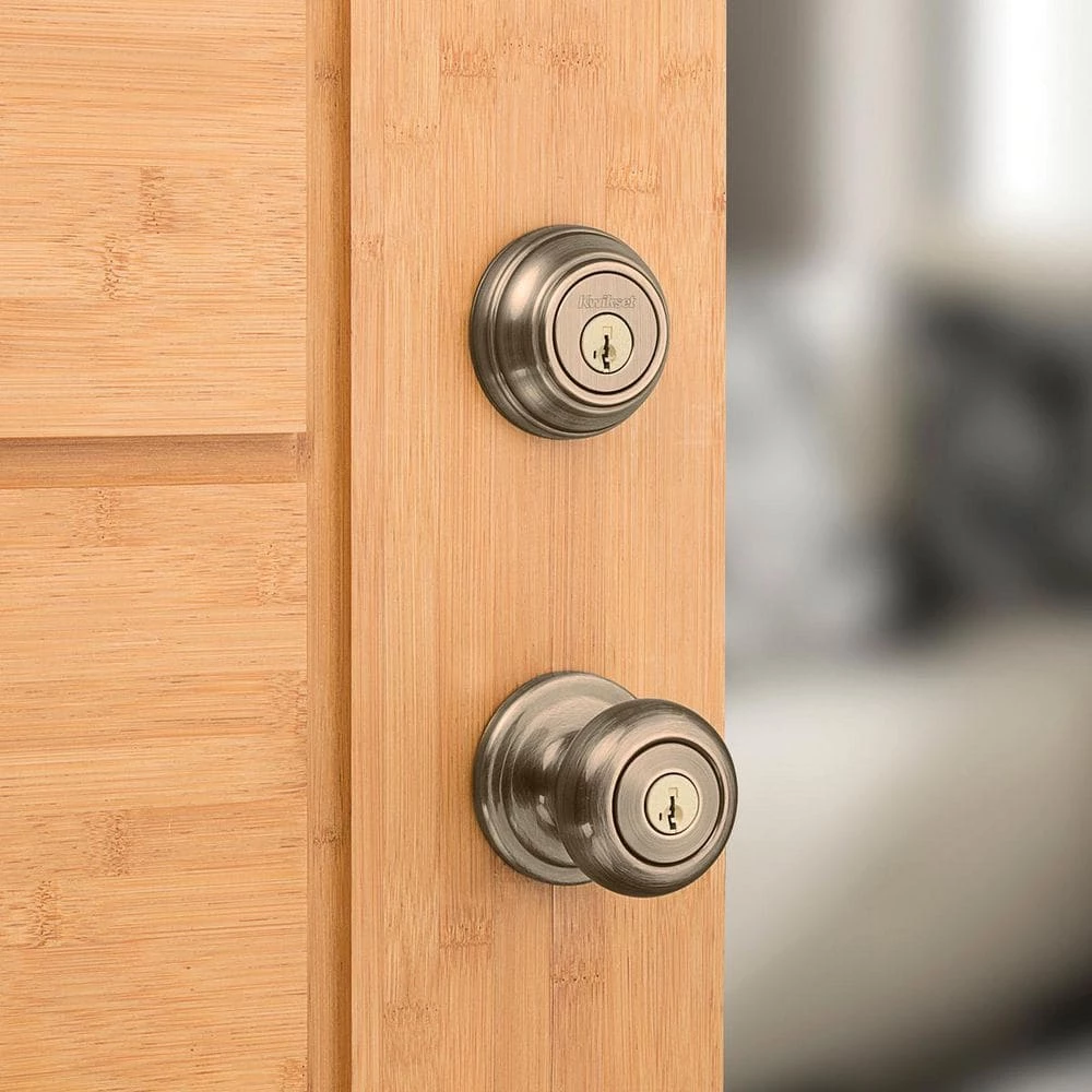 Step up to designer styles and superior security with Kwikset signature series products. Juno’s elegant, traditional style blends perfectly with most design styles. The complementary Antique Brass finish offers a warm feel with deep accents in the contours of the product. The Combo pack provides 2 locking points-keyed entry and a deadbolt. SmartKey Security Re-key Technology allows you to control who has access to your home. Re-key the lock yourself in seconds in 3 easy steps. Have you recently moved or had a child lose a key. It’s time to re-key. SmartKey Security provides the highest level of residential security and features BumpGuard to protect against lock bumping.