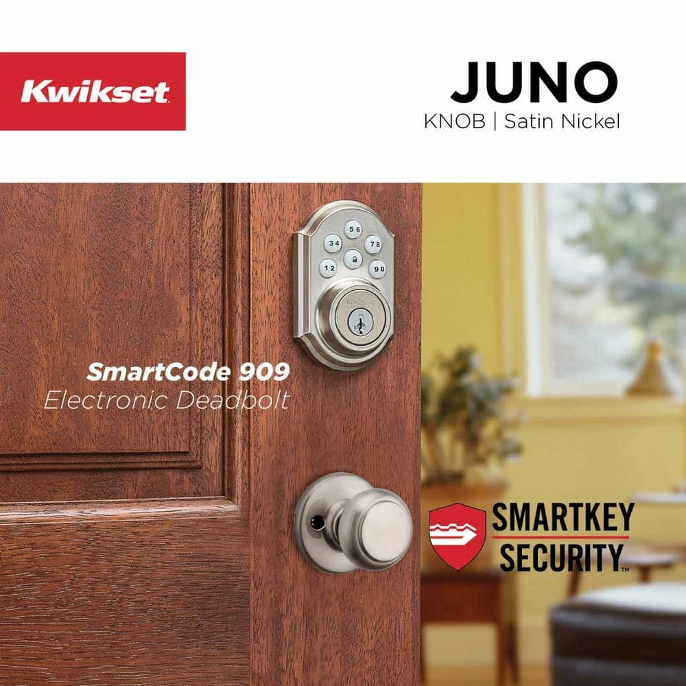 Step up to designer styles and superior security with Kwikset Signature Series products. Juno’s elegant, traditional style blends perfectly with most design styles. This passage knob/lever is best used in interior hall and closet applications where no locking is required. The knob/lever is reversible and mounts on both left and right handed doors. The crisp, clean appearance of the satin nickel finish adds to the overall look of the product and brings a modern feel.