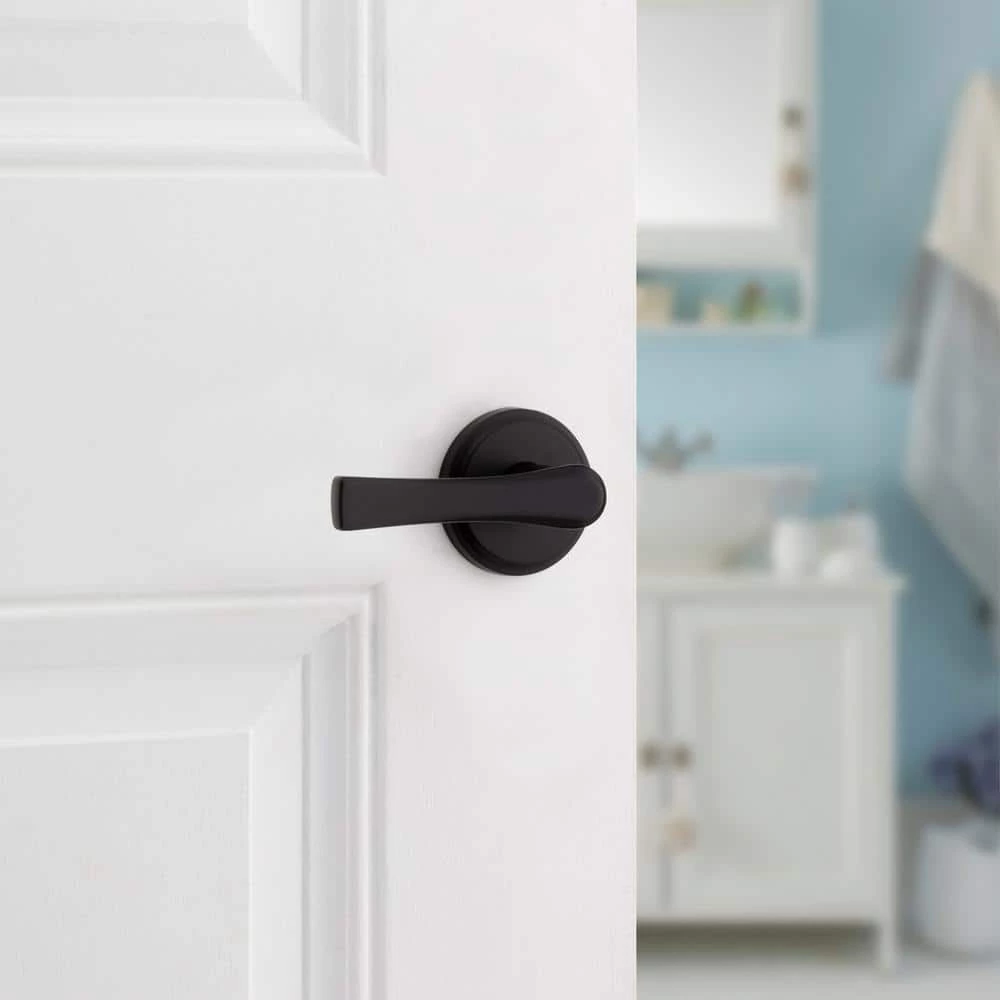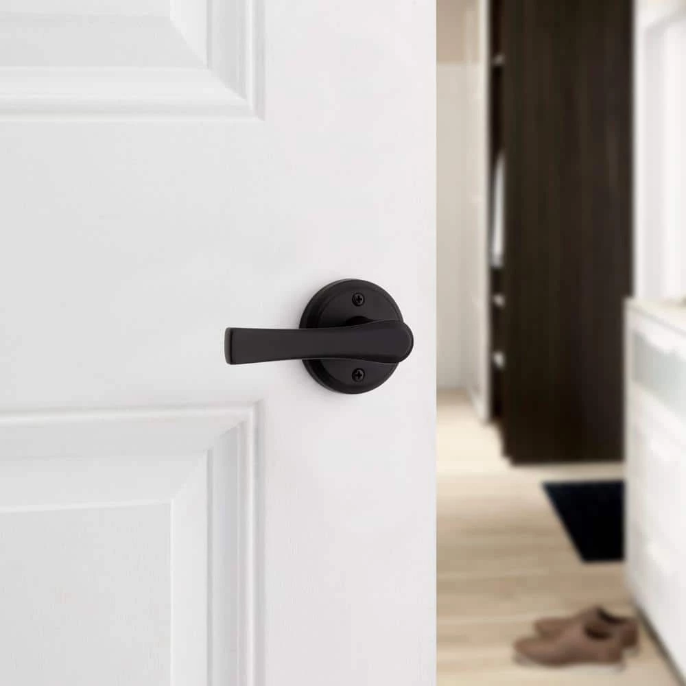 Step up to designer styles and superior security with Kwikset Signature Series products. The Katella lever is the perfect lever for those looking to update their home hardware from a traditional home to a more transitional style. Katella provides that custom look you desire but at an affordable price. Featuring the advance SmartKey Security technology where if you ever need it, you can re-key your lock yourself in-seconds. Katella also includes, on specific finishes, Microban Antimicrobial product protection that inhibits the growth of surface bacteria, providing a cleaner door hardware and 99% cleaner than unprotected surfaces. This privacy knob/lever is best used in interior bedroom and bathroom applications where privacy is required. Both knobs/levers are operated by the push button on the inside. The outside knob/lever is unlocked by an emergency key. The rich tones of Matte Black add the finishing touch to this product. The Matte Black finish provides a rich and warm complement to the product’s style.