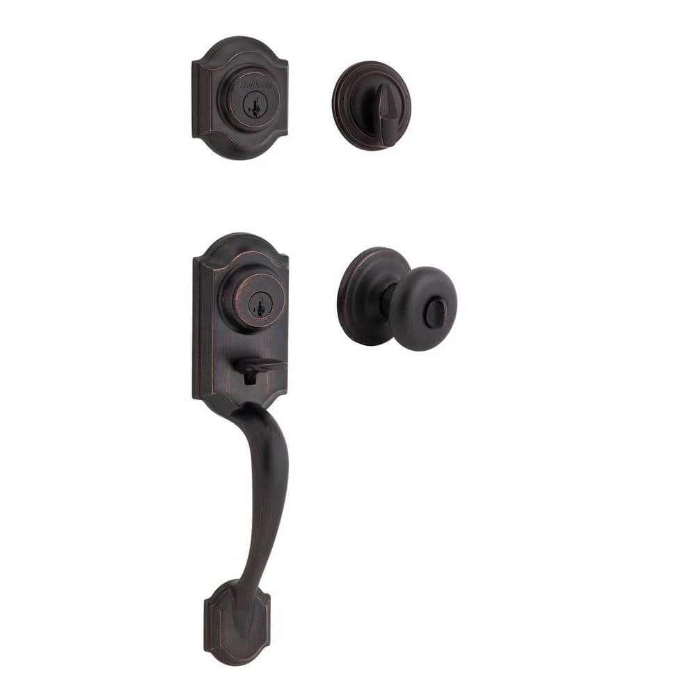 Step up to designer styles and superior security with Kwikset signature series products. Enjoy increased security and easy fit with the Montara handleset. 2 points of locking, on the deadbolt and the handleset, provide double the security. And the adjustable through bolt at the bottom of the handleset allows for easy installation and provides you peace of mind knowing that it will adjust to fit the bottom hole in your door. With the arched design, the Montara handleset will add both security and style to your front door. The Venetian Bronze finish is hand-rubbed to reveal unique bronze highlights and provides a rich and warm complement to the product’s style. This single cylinder handleset can be locked or unlocked by a key on the outside, or the turn button on the inside. SmartKey Security Re-key Technology allows you to control who has access to your home. Re-key the lock yourself in seconds in 3 easy steps. Have you recently moved or had a child lose a key. It’s time to re-key. SmartKey Security provides the highest level of residential security and features BumpGuard to protect against lock bumping.
