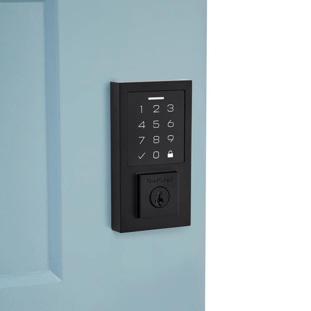 Add a level of style and security to your home with the SmartCode 270 touchpad electronic deadbolt. Designed with a sleek contemporary style to complement your home’s interior, you can secure your home and never have to worry about keys. To gain entry, simply enter your personalized code, while locking is as easy as the touch of a button. SmartCode is easy to install, program and use and utilizes 4 AA batteries. It also features SmartKey re-key technology as the back-up keyway. The deadbolt is operated by electronic touchpad and key outside and turn-piece inside. The crisp, clean appearance of the Matte Black finish reinforces the deadbolt’s modern design.