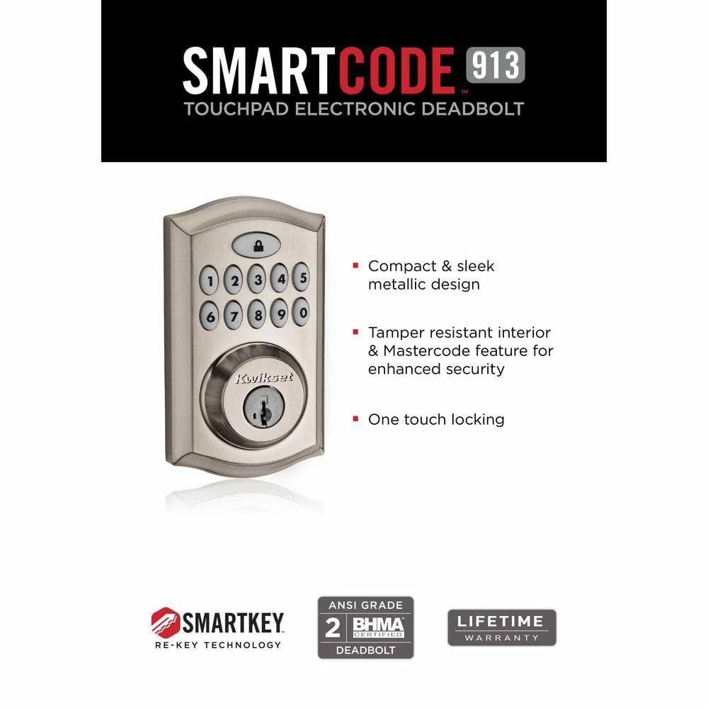 The SmartCode touchpad electronic deadbolt is a 1-touch locking motorized deadbolt. with your personalized code, you can enter your home with the convenience of keyless entry and the back-lit keypad provides increased visibility. SmartCode is easy to install, program and use and operates on 4 AA batteries. It also features SmartKey Security as the back-up keyway. This single cylinder deadbolt can be locked or unlocked by using the keypad or key from the outside as well as the turn button from the inside. The Lifetime Polished Brass finish adds to the traditional look and feel of the product and makes a classic statement.