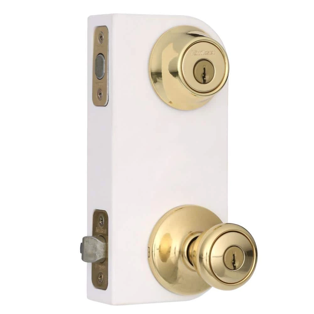 As the industry leader, Kwikset has provided trusted security for over 60 years and has become synonymous with security, peace of mind, style and innovation. The classic design of Tylo is at home in any decor. Its style lends a graceful finish to any door. The Polished Brass finish adds to the traditional look and feel of the product and makes a classic statement. The Combo pack provides two locking points-keyed entry and a deadbolt.