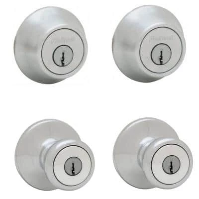 As the industry leader, Kwikset has provided trusted security for over 60-years and has become synonymous with security, peace of mind, style and innovation. The classic design of Tylo is at home in any decor. Its style lends a graceful finish to any door. The Satin Chrome finish gives the product a modern and minimalist look. The project pack provides 2 entry knobs and 2 single cylinder deadbolts. The Combo pack provides 2 locking points-keyed entry and a deadbolt.