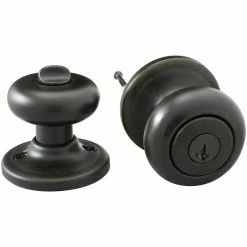 Kwikset Tylo Polished Brass Bed/Bath Door Knob Featuring Microban Antimicrobial Technology with Lock