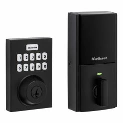 Kwikset Hollis Round Rose Matte Black Keyed Entry Door Lever featuring SmartKey Security
