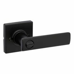 Kwikset Breton Square Matte Black Keyed Entry Door Handle Featuring SmartKey Technology and Microban